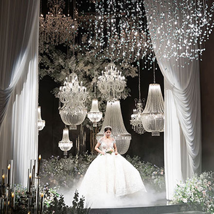 지금껏 본 적 없는 신비롭고 아름다운 신의 비원, 음악의 선율을 닮은 곡선의 푸른빛 물결비즈, 높고 긴 화이트쉬폰 커튼속 행잉플랜트와 시즈널 플라워 아트, 수많은 샹들리에로 버진로드와 이어진 가장 주목받는 엔터런스, 지금까지 없던 새로운 웨딩 스타일로 신비스럽고 아름다운 웨딩을 연출합니다.