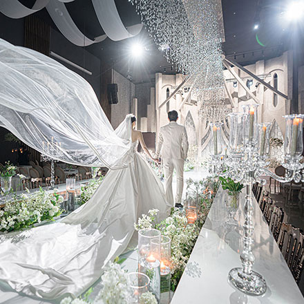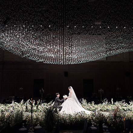 별빛이 수놓인 천장, 은하수처럼 흐르는 샹들리에, 찬란한 빛이 반겨주는 약속의 성전. 투게더홀은 들어서는 순간 탄성을 자아내는 웅장함을 넘어 경이로운 웨딩 공간. 높은 층고의 웅장함과 높고 긴 버진로드, 아낌없는 플라워 데코레이션으로 호텔웨딩 스타일의 진중하고 고급스러운 분위기의 웨딩을 연출합니다.